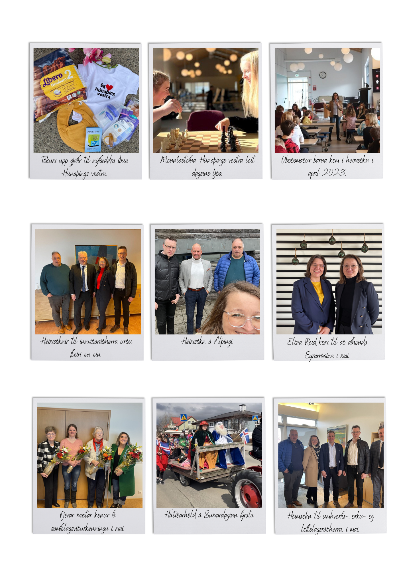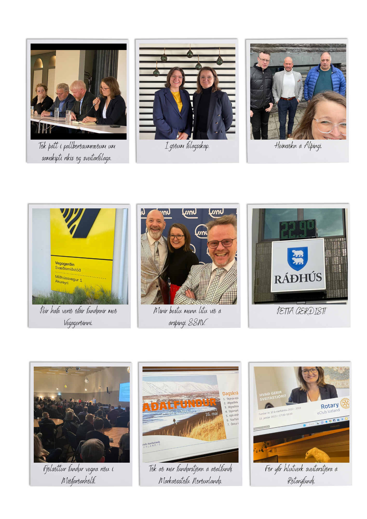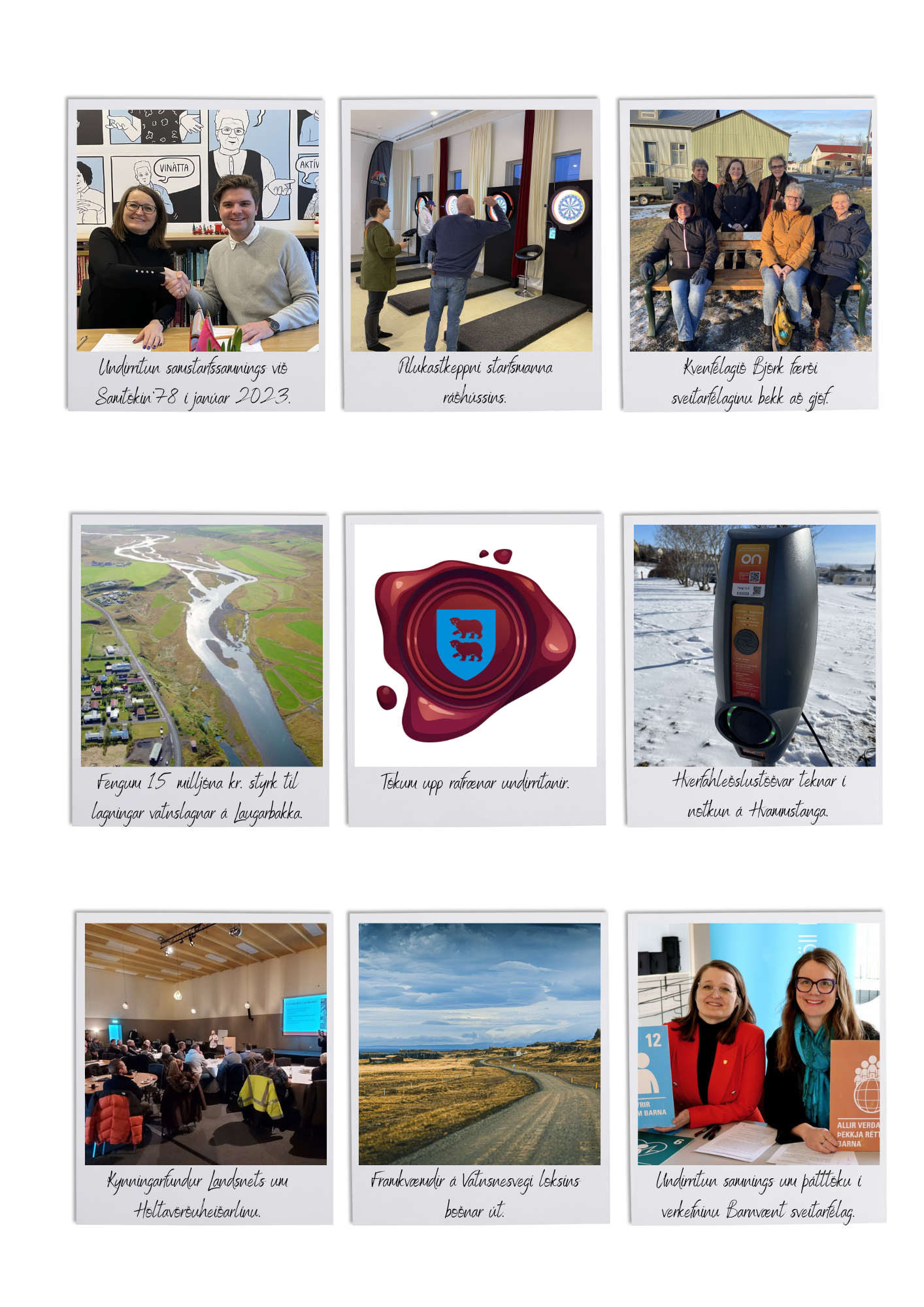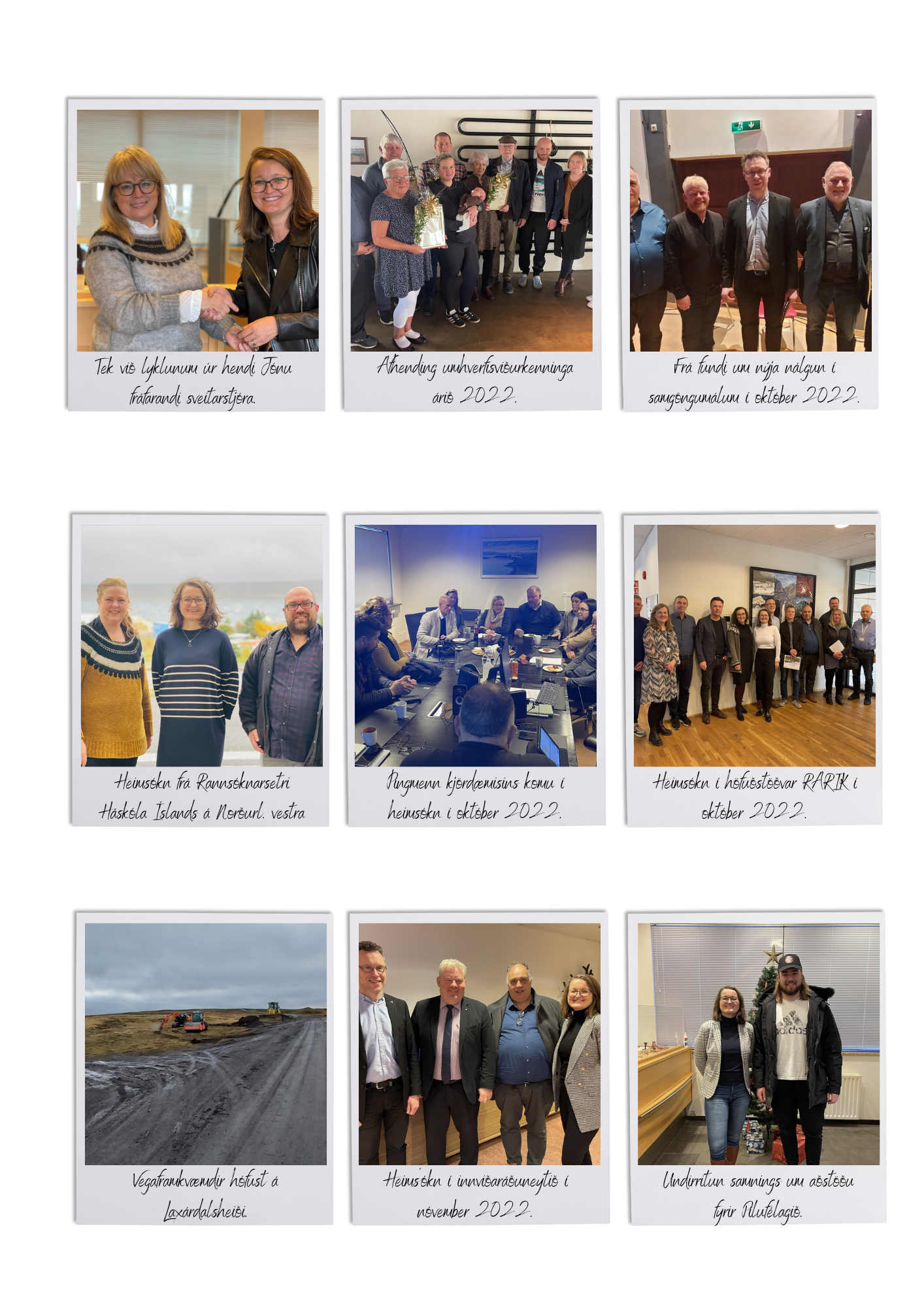 Þar sem vikan var óvenju stutt þá er við hæfi að rifja upp að fyrir skemmstu átti ég eins árs starfsafmæli en ég hóf störf 1. september 2022. Ef ég á að vera alveg hreinskilin þá hefur þetta ár flogið hjá á ógnarhraða. Ég vil leyfa mér að segja að heilmargt hefur áunnist en það er svo sannarlega enn meira eftir. Ef hægt er að tala um „frústrasjón“ í mínu starfi þá væri hún líklega sú að hlutir geta gerst alveg óskaplega hægt. En þokast þó áfram smátt og smátt. Í stað þess að fara yfir árið í máli læt ég fylgja með nokkrar myndir frá hinum ýmsu verkefnum sem unnin hafa verið á árinu á vettvangi sveitarfélagsins, heimsóknum sem var farið í og gestum sem tekið var á móti o.s.frv. (röð myndanna er handahófskennd og listinn engan veginn tæmandi).