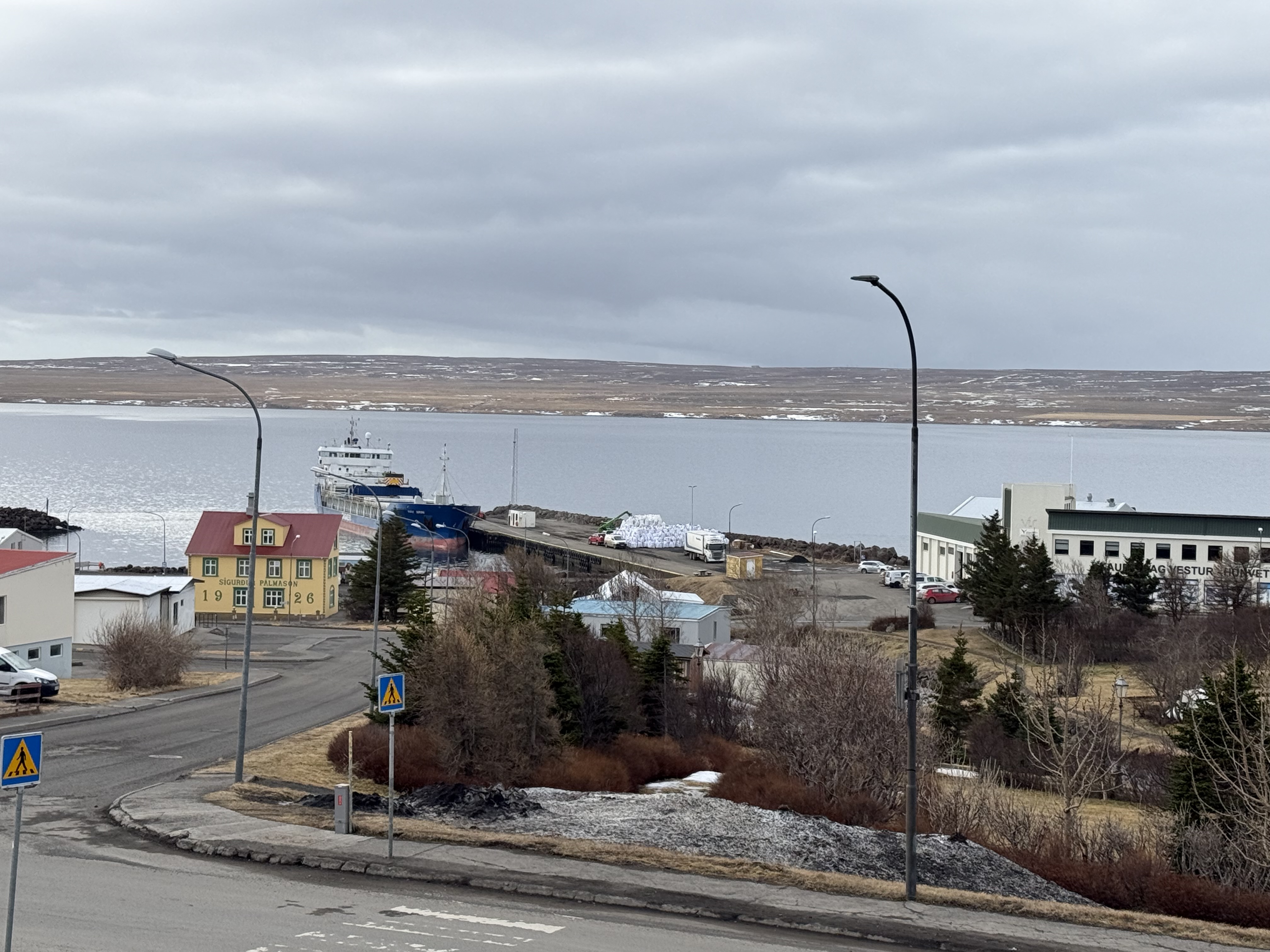 Ég leit við í vinnunni á laugardeginum til að halda áfram tiltekt á skrifstofunni og að henni lokinni greip ég í nokkur verkefni sem gott er að fá næði til að sinna, m.a. dagbókarskrifum. Ég hafði því gott útsýni yfir fyrsta vorboðan, áburðarskipið, sem lagðist að bryggju rétt fyrir hádegið. Dýptarmælingar Vegagerðarinnar fóru fram fyrir réttri viku og sýndu að ástandið var betra en við höfðum þorað að vona og greið leið fyrir vorboðana. Útboð á dýpkun hafnarinnar fer svo af stað eftir helgina og vonandi verður ráðist í hana sem fyrst í sumar.
