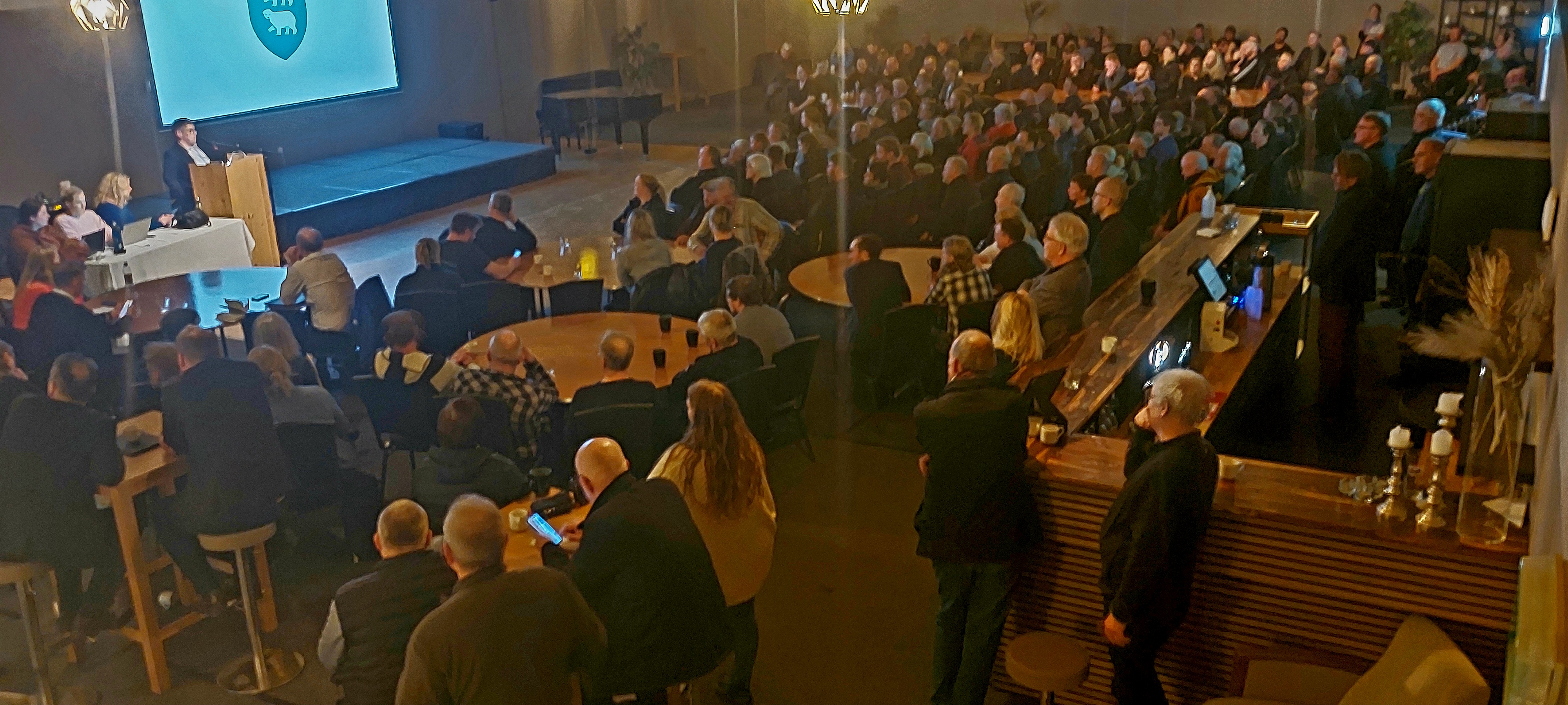 Frá fjölsóttum fundi um riðumálin á Hótel Laugarbakka þriðjudaginn 18. apríl. Um 300 manns sóttu fundinn.