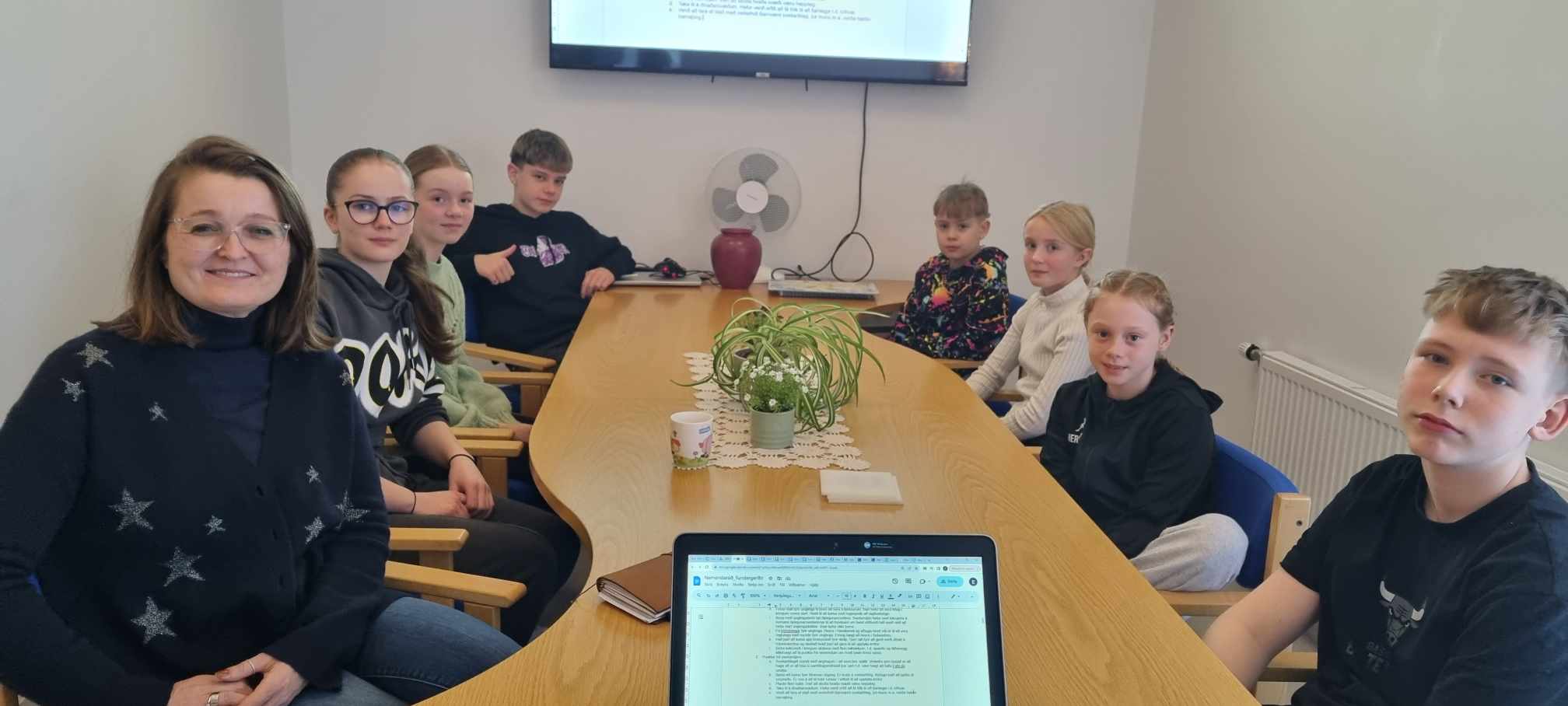 Með nemendaráði grunnskólans. Heldur betur flottir krakkar.