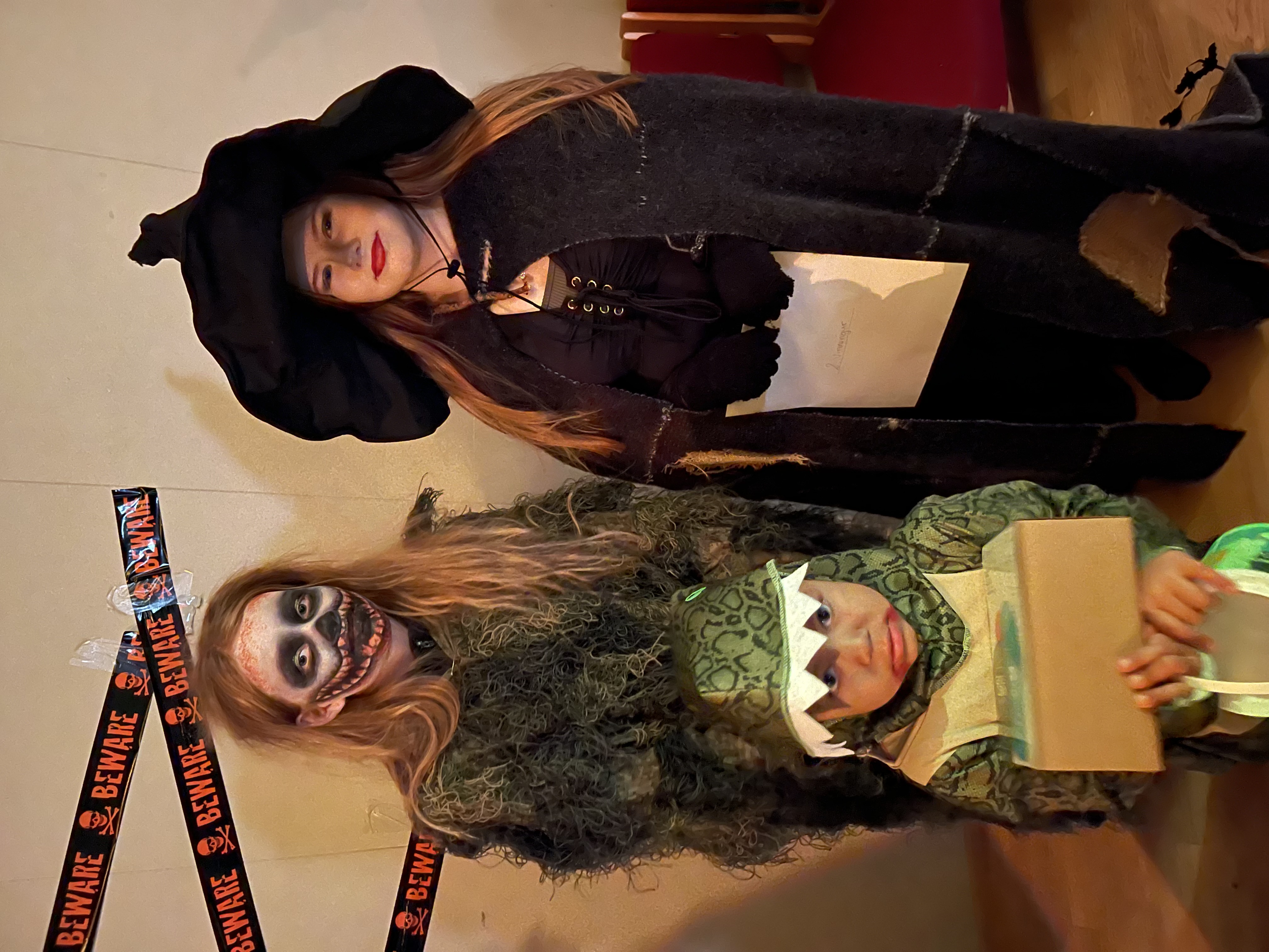 Hrekkjavökugleðin fór fram í félagsmiðstöðinni Óríon á laugardeginum. Ég bakaði nokkrar bollakökur og gerði smávegis hræðilegt snarl kvöldið áður sem við lögðum til á veisluborðið sem var drekkhlaðið hrekkjavökulegum veitingum. Krakkarnir skemmtu sér konunglega og það var hreint ekki auðvelt verk að velja bestu búningana. En að öllum öðrum ólöstuðum veitti dómnefndin þrjár viðurkenningar. Bríet Anja Birgisdóttir var valin í fyrsta sæti fyrir búning sinn. Hún skartaði magnaðri andlitsmálningu sem pabbi hennar sá um að gera. Í öðru sæti var María Guðrún Theodórsdóttir í mjög sannfærandi nornagervi. Þriðja sætið fékk svo í skaut Matthíasar Faustini de Aquino en hann tók sig mjög vel út í riseðlubúningi. Með mér í dómnefndinni voru mæðgurnar Jóhanna Erla Jóhannsdóttir og Ástríður Halla Reynisdóttir.