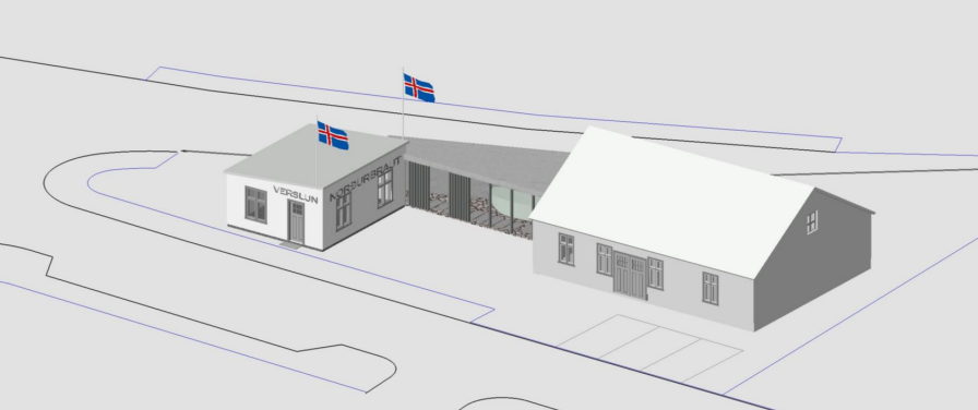 Á laugardagskvöldinu fór fram sviðamessa. Fjáröflunarsamkoma sem fjölmargir stóðu fyrir til fjáröflunar fyrir endurgerð Norðurbrautar, fyrstu vegasjoppunnar á Íslandi. Svo margir komu að samkomunni að ég legg ekki í að þakka þeim öllum af ótta við að gleyma einhverjum. Ég þakka þeim öllum kærlega fyrir þá miklu vinnu sem hefur farið í að skipuleggja viðburðinn. Þegar sviðamessan var auglýst var ég fljót að bjóða bóndanum þar sem hann er mjög hrifinn af sviðum. Ég get vel án þeirra verið en fékk mér þó einn neðri kjamma og fór býsna langt með hann. Bóndinn dró mig svo að landi. Vinur minn, Ingimar Sigurðsson á Kjörseyri, var veislustjóri og fórst það einkar vel úr hendi. Flutt var tónlist enda státum við af framúrskarandi tónlistarfólki hér í héraðinu. Kynntar voru hugmyndir um endurbyggingu Norðurbrautar og staðsetningu hennar norðan við Verslunarminjasafnið og tengibyggingu á milli þar sem bátur Bangsa verður til sýnis. Ég fékk kynningu á þessum áformum á dögunum og finnst þau ákaflega spennandi. Ekki bara vegna varðveislugildis hússins heldur líka vegna fegurðarinnar í því að minnast Bangsa með þessum hætti. Ég leyfi mér að láta fylgja með mynd af allra fyrstu hugmyndum sem sýndar voru á sviðamessunni sem Hólmfríður Ósmann Jónsdóttir arkitekt á veg og vanda af. Þar sést hvernig áætlað er að koma húsinu fyrir á reitnum þar sem Verslunarminjasafnið er og tengja húsin saman með tengibyggingu þar sem báturinn hans Bangsa verður til sýnis. Ítreka það að hér er aðeins um fyrstu hugmyndir að ræða og verkefnið getur og mun alveg örugglega taka breytingum.