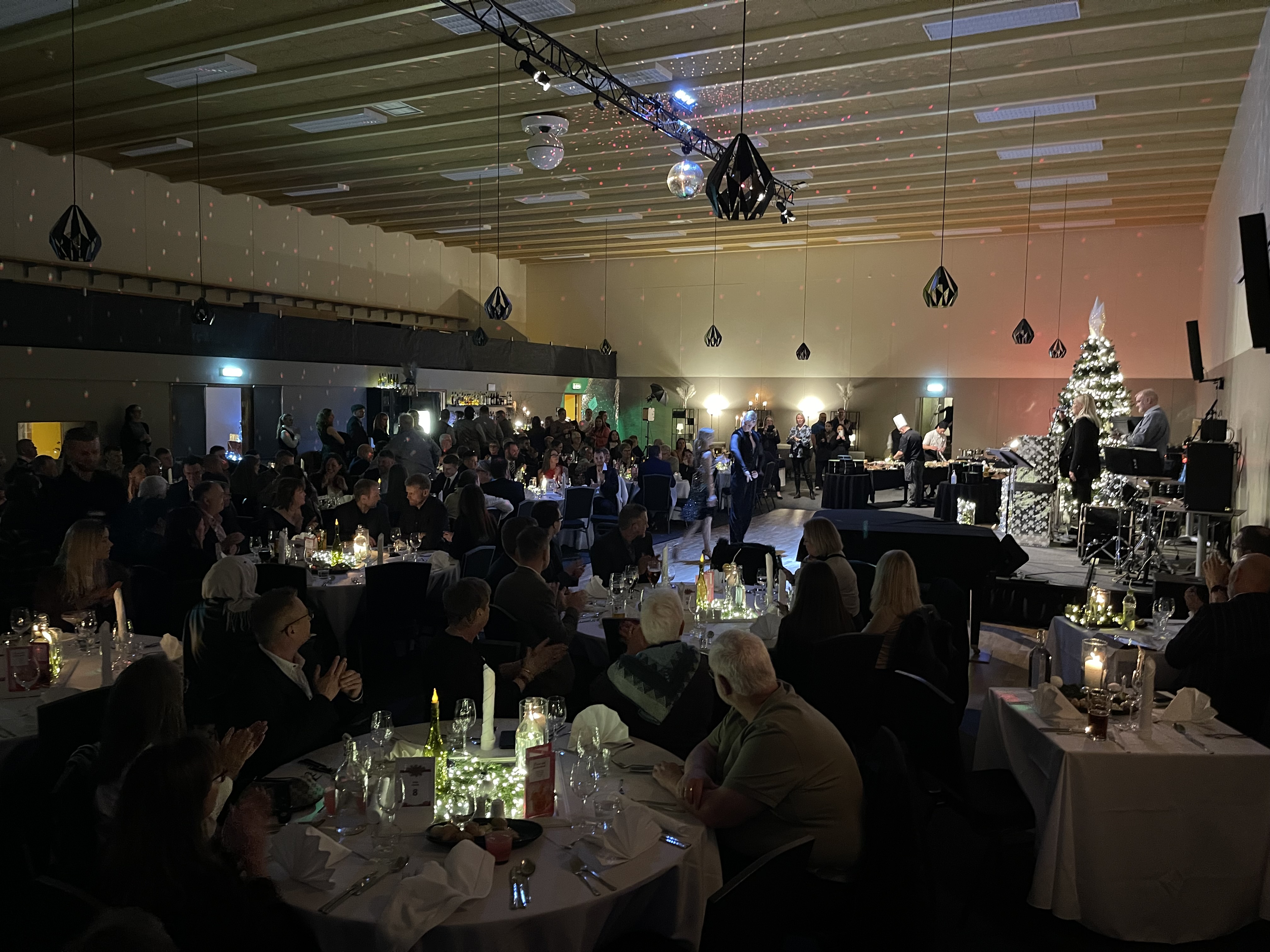 Grettissalur var svo sannarlega í hátíðarbúningi á jólahlaðborðinu. Tvíburasystkinin, börn Arnar og Hildar eigenda hótelsins, skemmta þarna gestum með dansatriði.