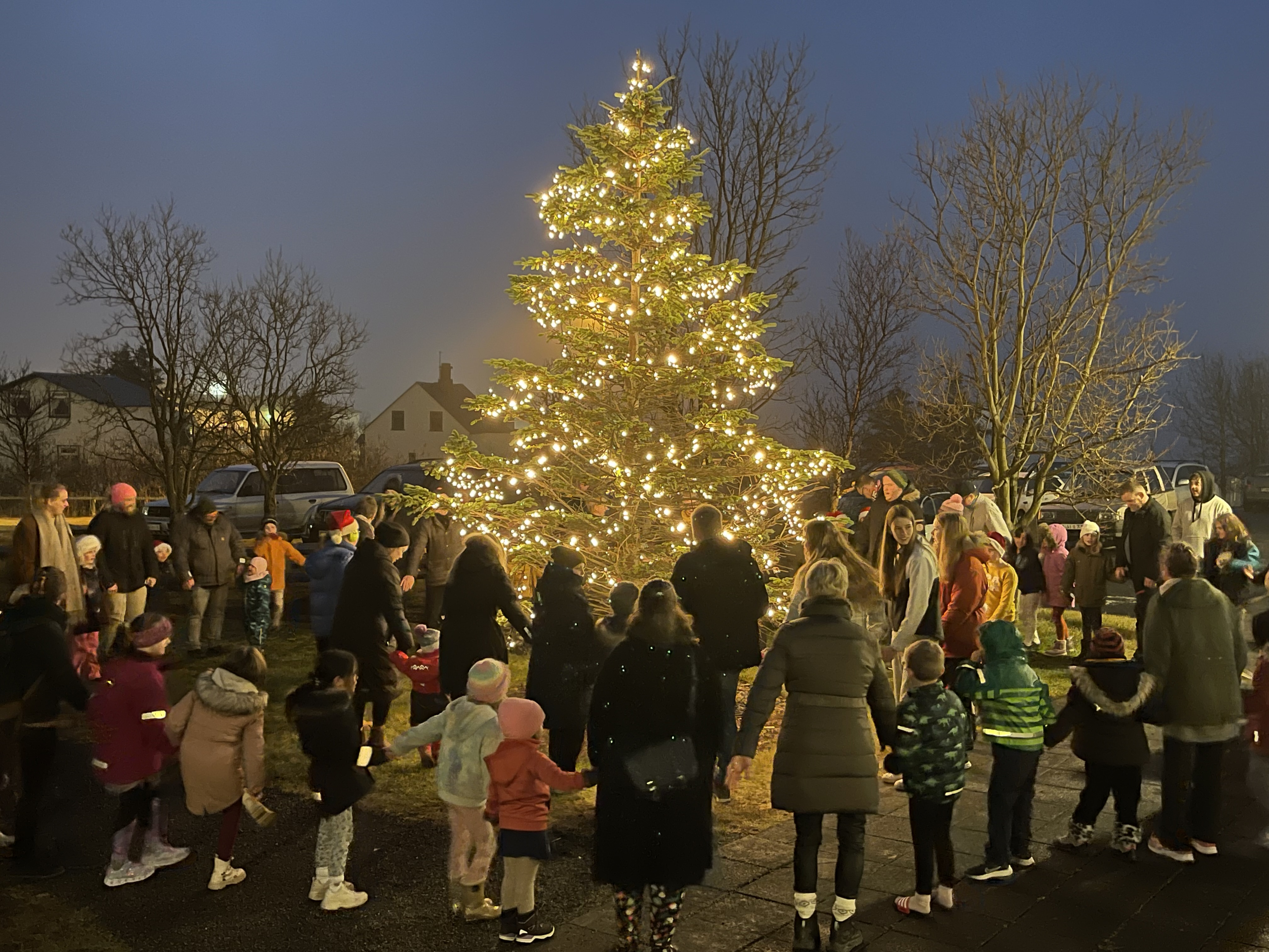 Frá tendrun jólaljósanna á jólatrénu við Félagsheimilið. Auðvitað var gengið í kringum jólatréð.