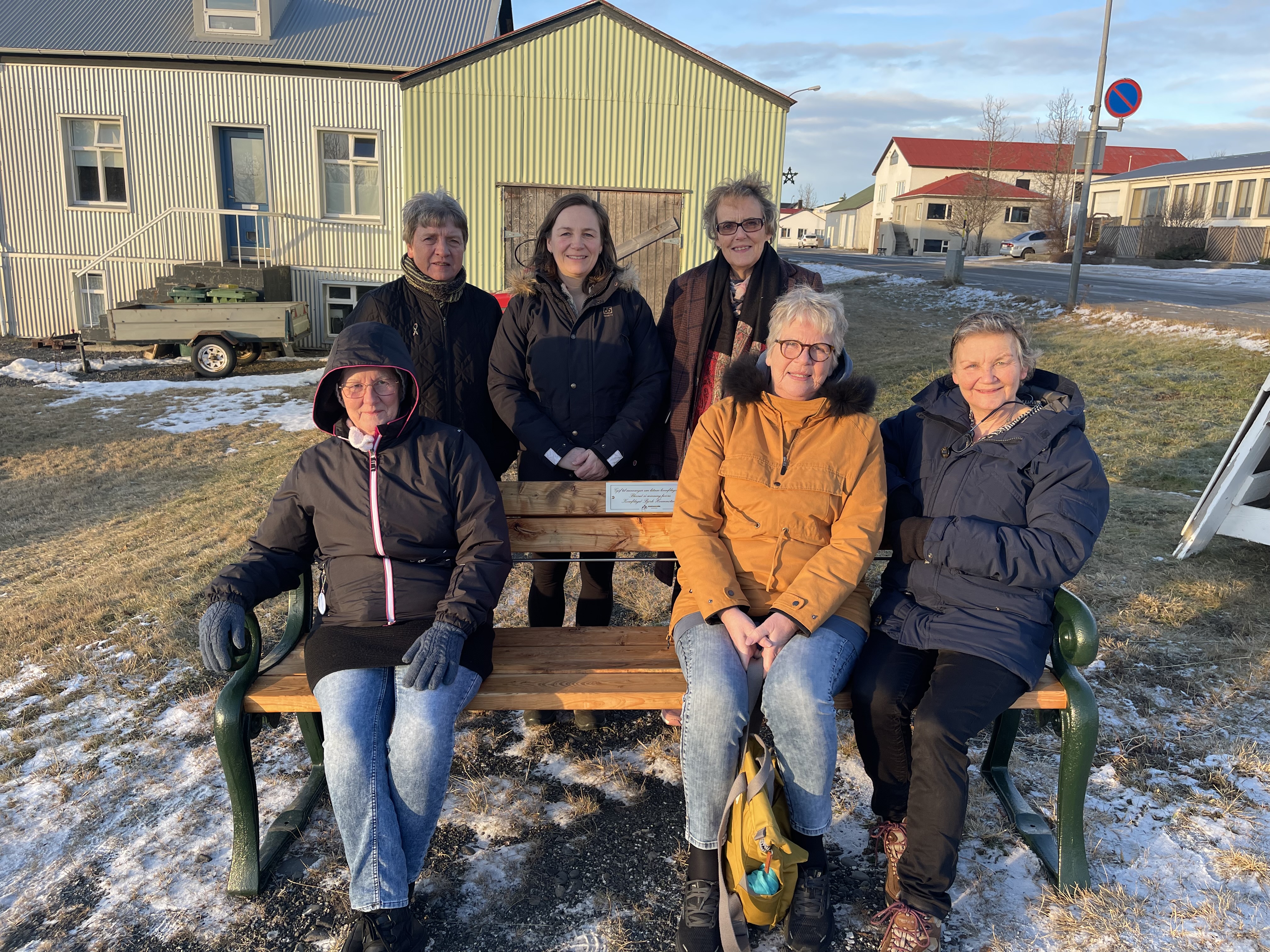 Félagskonur úr Kvenfélaginu Björk og bekkurinn góði.