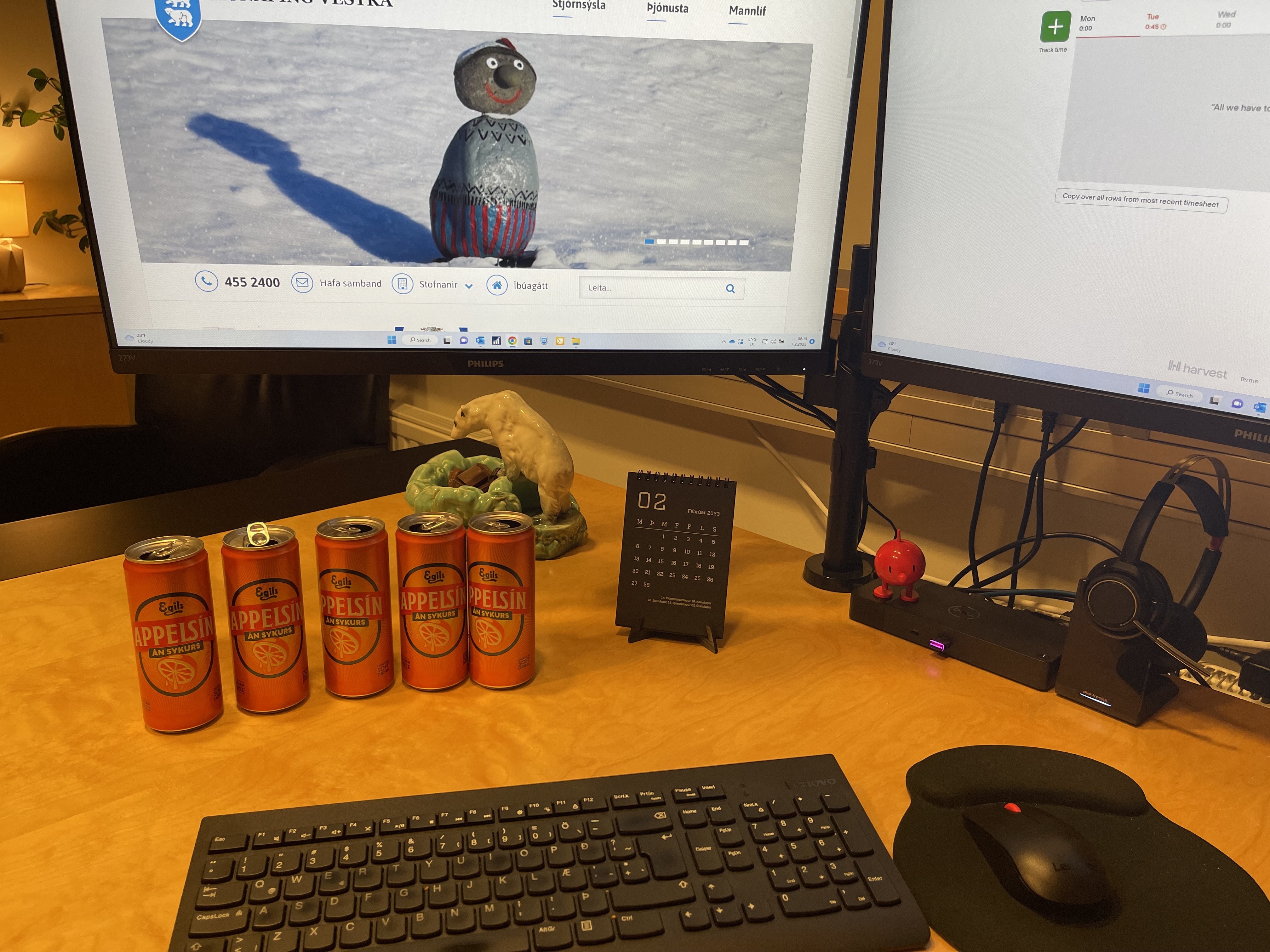 Ég leit við á skrifstofunni á laugardeginum til að hreinsa upp ýmis atriði af verkefnalistanum og þessi dagbókarfærsla er skrifuð á laugardagskvöldi þegar þorrablót Ungmennafélagsins Kormáks stendur sem hæst. Það er táknrænt því með hjálp samfélagsmiðlanna fékk ég að sjá hluta þess gríns sem spannst út frá dagbókarskrifunum frá því ég tók til starfa. Ég veit nú ekki hvort ég tek upp að færa fréttir af kaupum á músamottum á skrifstofuna en get þó upplýst að ég pantaði mér fyllingar í kúlupennann minn í vikunni, vökvaði blómin og fyllti á nammibirgðirnar í kassanum í hillunni hjá mér til að hafa eitthvað til að maula við skrifborðið. Þó það hafi verið gert góðlátlegt grín að því þá skammast ég mín ekkert fyrir að mér finnst verkefni mín raunverulega skemmtileg þó þau séu krefjandi og ég er mjög stolt af sveitarfélaginu okkar og þreytist aldrei að tala um það. Þó ég hafi ekki átt heimangengt á blótið er ég samt þakklát þeim sem gefa sér tíma til að standa í því að setja upp skemmtun sem þessa fyrir okkur hin og segi kærar þakkir við ykkur öll. Fyrir næsta þorrablót bendi ég leikflokknum á að dós af sykurlausu appelsíni er aldrei langt undan á skrifborði sveitarstjóra, enda enn ekki náð þeim þroska að þykja kaffisopinn góður :)