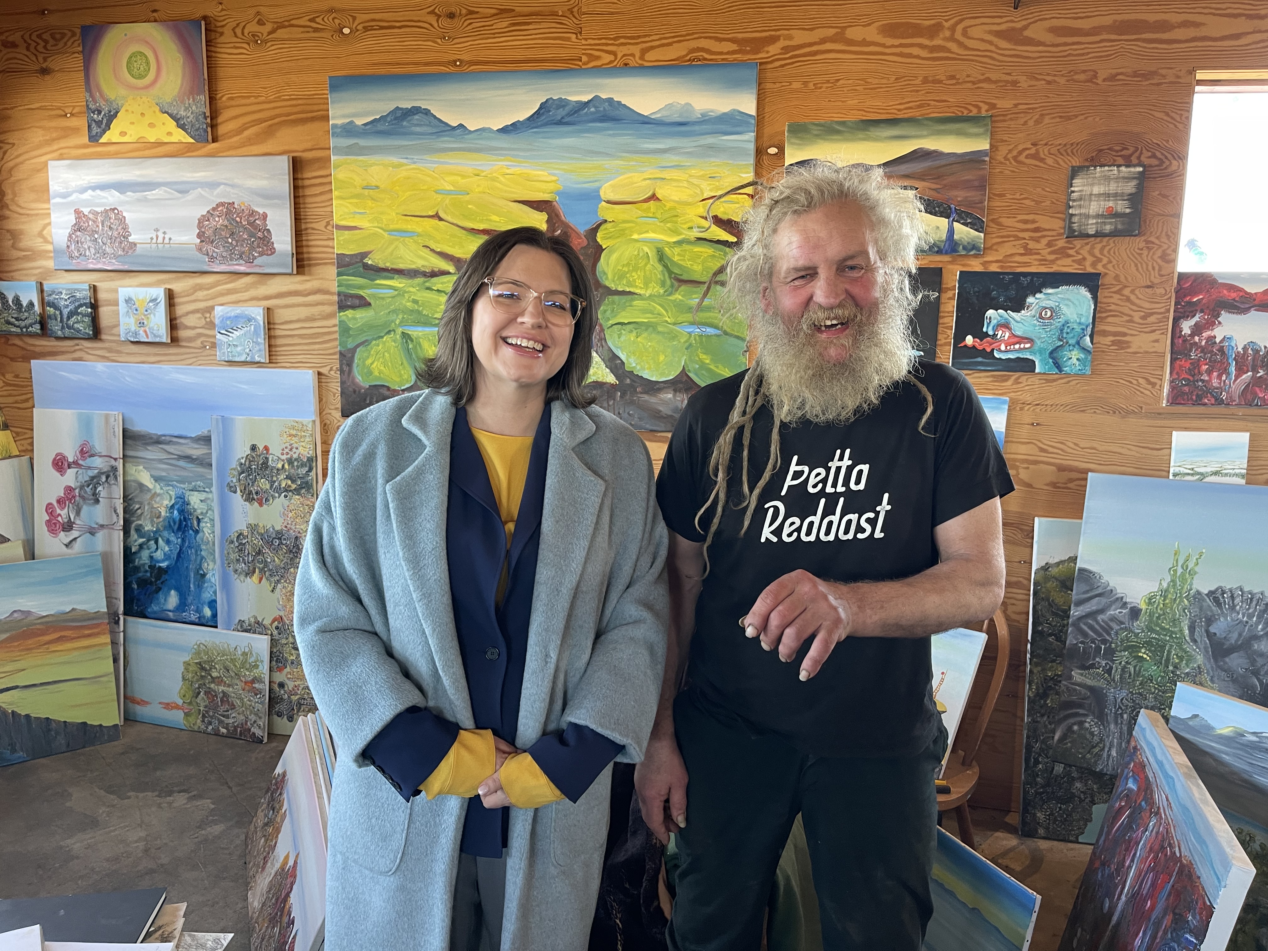 Á þriðjudeginum fór dágóður tími á milli verka í að ganga frá undirbúningi heimsóknar góðra gesta á miðvikudeginum. Frú Eliza Reid ásamt fulltrúum Listahátíðar og bakhjarla Eyrarrósarinnar komu til að afhenda Eyrarrósina. Handbendi hlaut viðurkenninguna árið 2021 og fór afhendingin því fram hér. Sjálf afhendingin var í glæsilegum húsakynnum Handbendis í Eyrarlandi og móttaka að henni lokinni var haldin á Sjávarborg. Áður en til afhendingarinnar kom heimsótti hópurinn nokkra vel valda staði með menningarlega skírskotun í sveitarfélaginu. Byrjað var á Byggðasafninu á Reykjum, þar sem líka var sýning á Heimferð, verðlaunasýningu Handbendis sem ég mæli svo sannarlega með. Ein allra áhrifamesta leiksýning sem ég hef séð. Frá Byggðasafninu lá leið til Jóns Eiríkssonar listmálara á Búrfelli þar sem hann sagði frá list sinni og sýndi okkur nokkur verka sinna. Jón er afkastamikill listamaður sem skemmtilegt er heim að sækja. Þaðan lá leið í Leirhús Grétu þar sem Gréta sagði stuttlega frá sinni listsköpun. Við getum svo sannarlega verið stolt af lista- og handverksfólkinu okkar. Nánar er sagt frá heimsókninni í frétt á heimasíðu sveitarfélagsins.