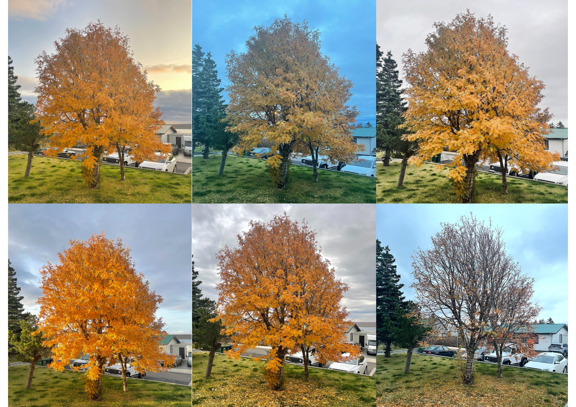 Seinnipart dags á laugardaginn og líka á sunnudag fékk ég svo ömmustelpunar mína, hana Sóldísi Yrju í heimsókn. Við sinntum m.a. haustverkum í garðinum og rökuðum saman laufum. Eitthvað í veðurfarinu síðustu vikur gerði það að verkum að reynitréið í garðinum var óvenju fallegt í haustlitunum og tók ég nokkrar myndir af því sem ég læt fylgja með. Líklega hefur það verið svona fallegt af því að rokið var minna en vanalega svo litirnir voru áberandi í lengri tíma en ella.