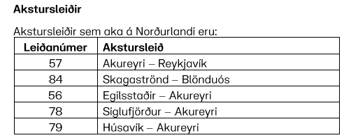 Leið 56 sem ekur á milli Akureyrar og Egilsstaða verður snúið við og mun upphafs- og endastöð leiðarinnar vera Egilsstaðir í stað Akureyrar. vagninn mun einnig aka í öllum ferðum til og frá Akureyrarflugvelli.