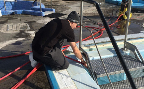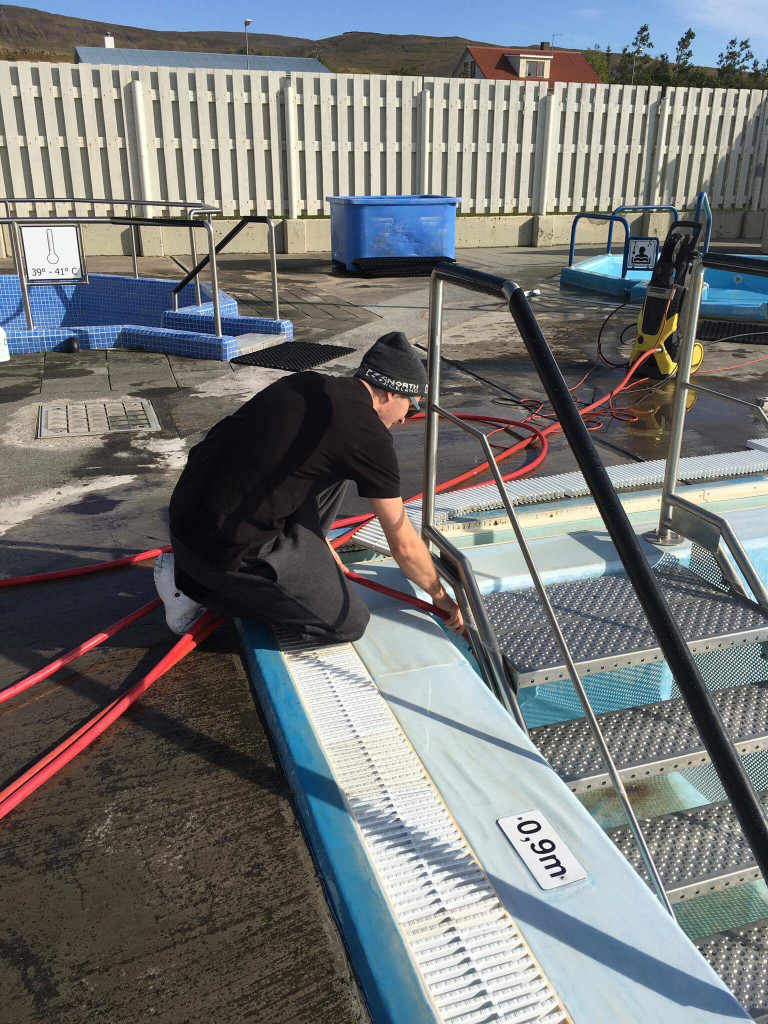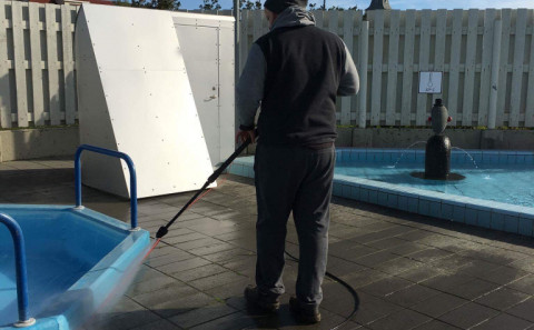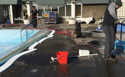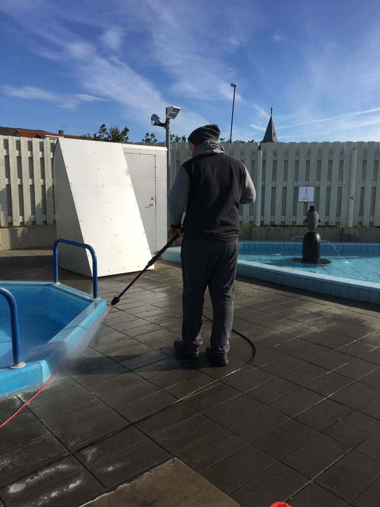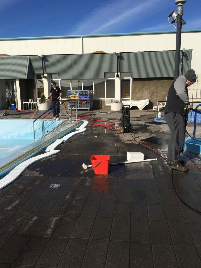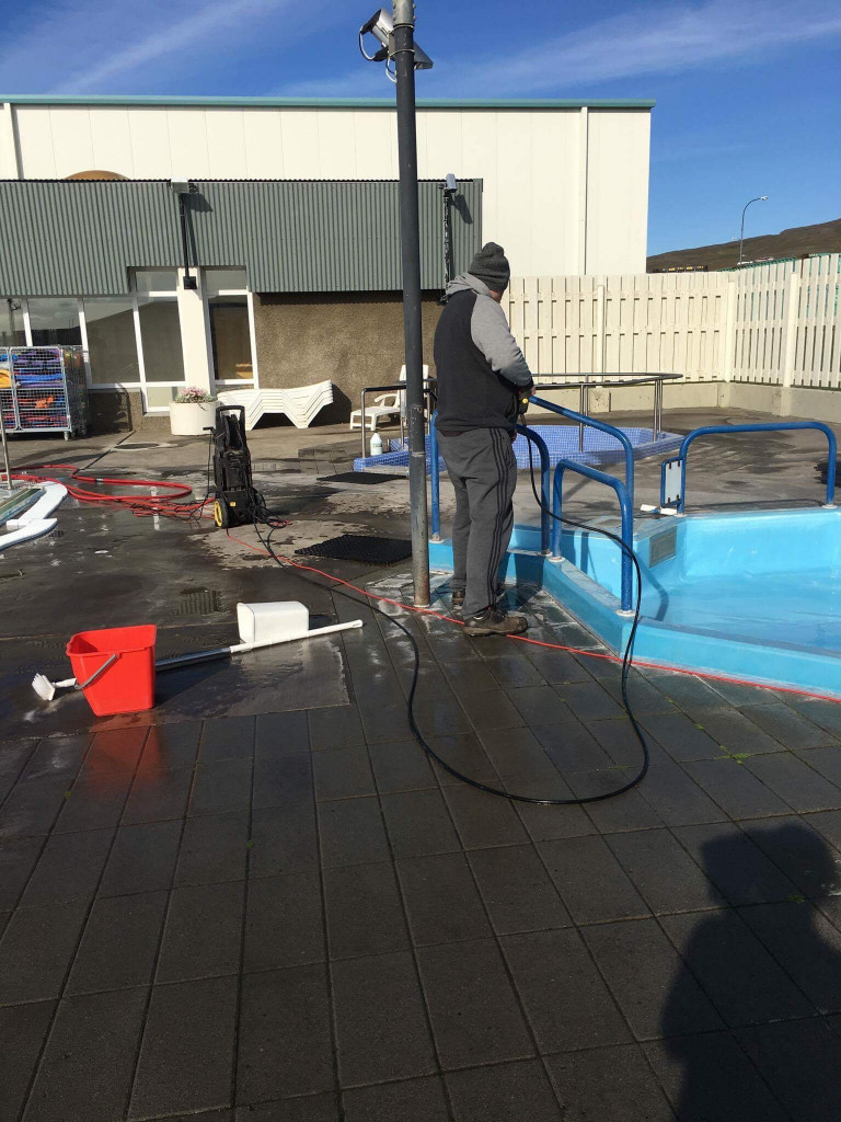 Einnig er tíminn notaður til að taka allt útisvæðið sundlaugarinnar í gegn. Sundlaugin, pottar og búnaður eru tæmdir, þrifnir og yfirfarinn af starfsfólki sundlaugarinnar og starfsfólki áhaldahússins.  Ný blöndunartæki sett upp og ýmislegt annað lagfært.  Þá verið að mála grindverkið