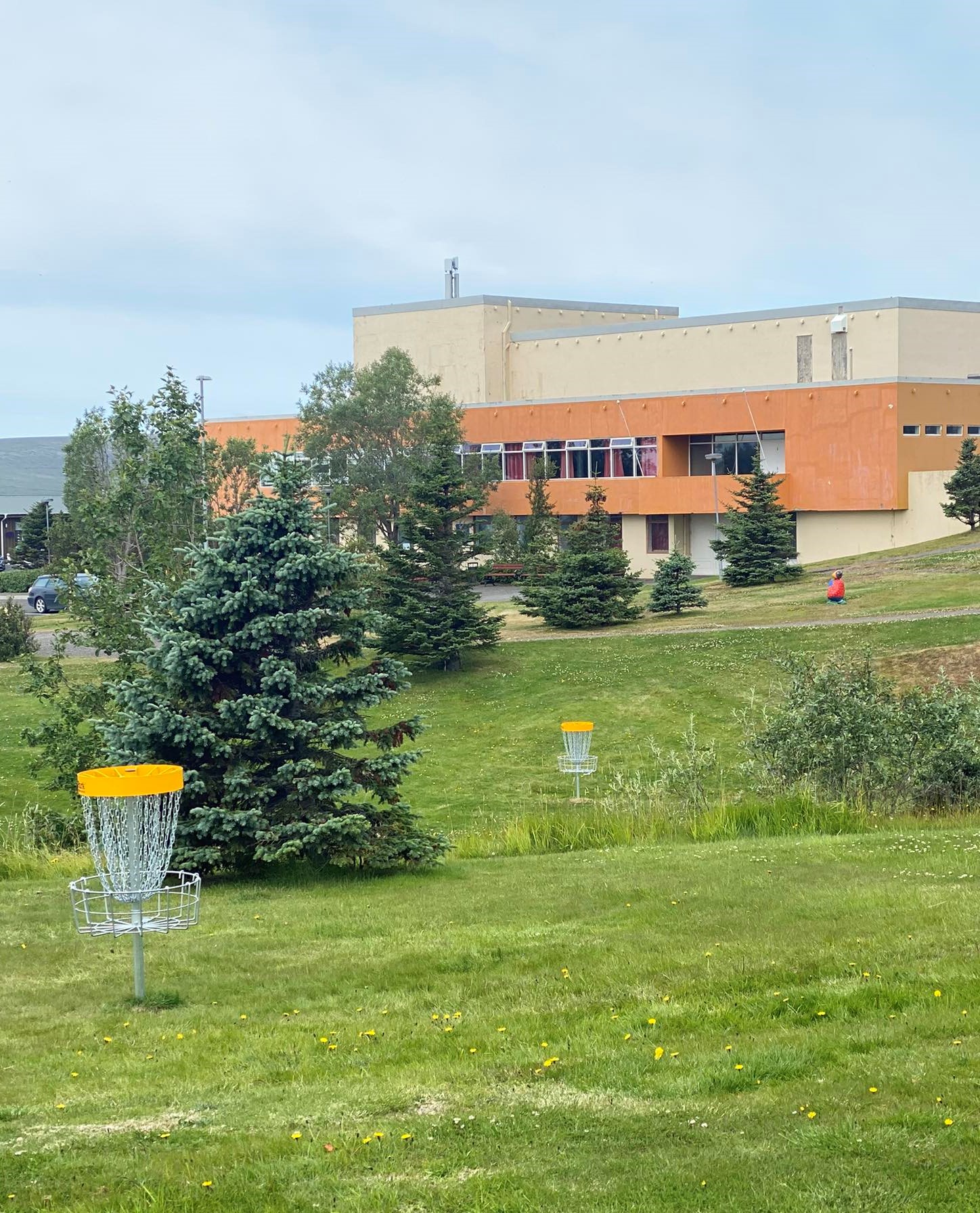 Einnig eru komnar upp tvær körfur á Bangsatúni sem upplagt er að byrja að æfa köstin á, eða spila púttleiki.