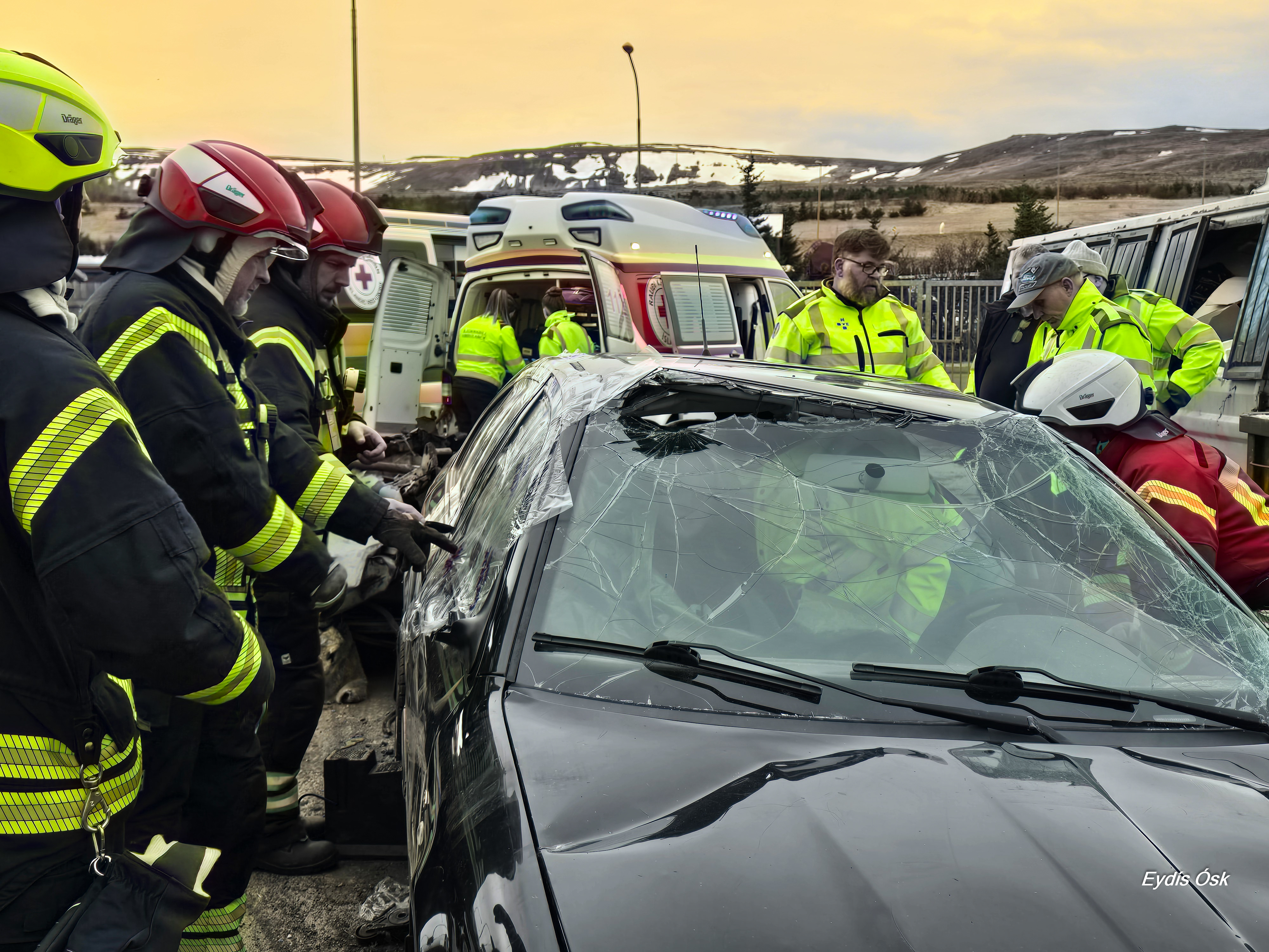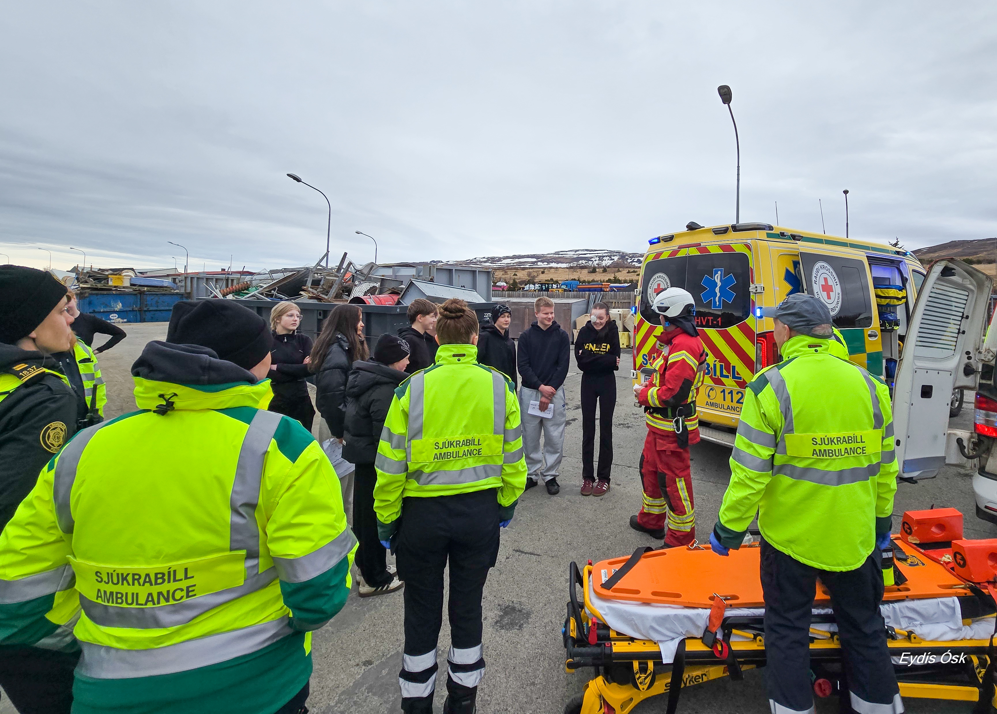 Í æfingunni fengu nemendur meðal annars að sjá hvernig einstaklingur er losaður úr bílflaki, hvernig fyrstu viðbrögð og sjúkraflutningar fara fram og hvaða búnaður er notaður við slíkar aðstæður.