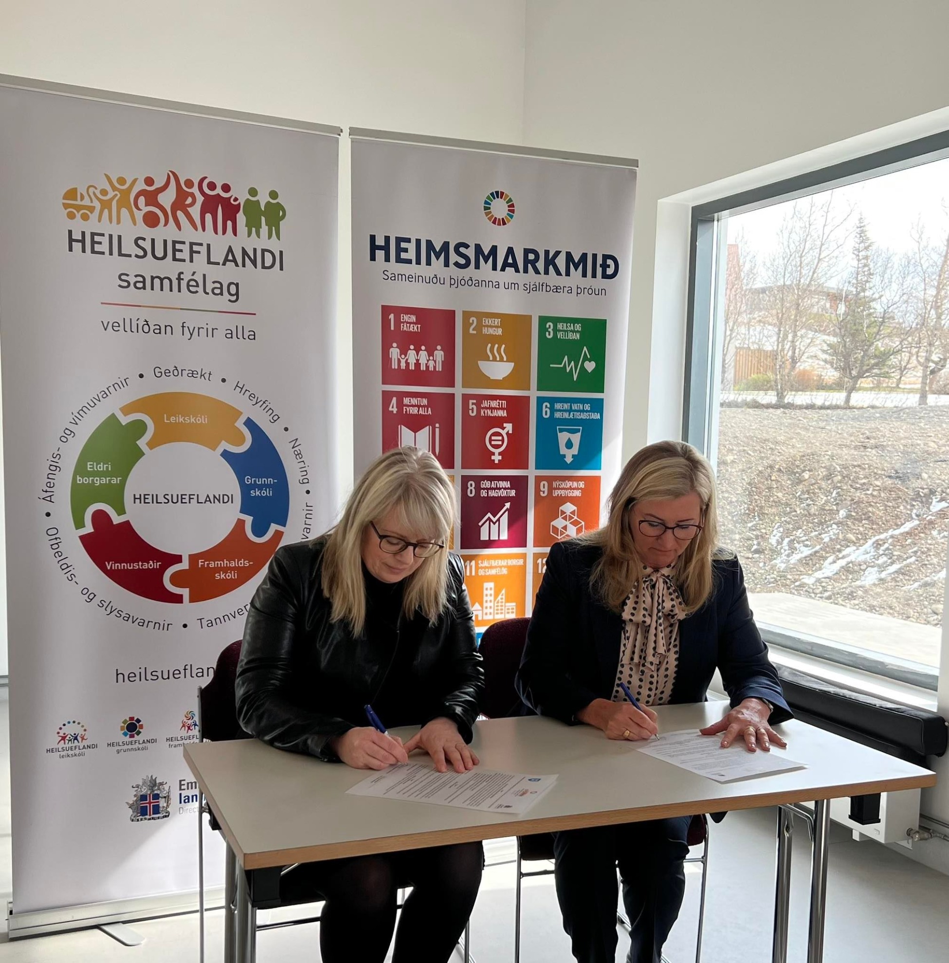 Í dag undirrituðu Alma D. Möller landlæknir og Ragnheiður Jóna Ingimarsdóttir sveitarstjóri samning um innleiðingu Heilsueflandi samfélags í Húnaþingi vestra.