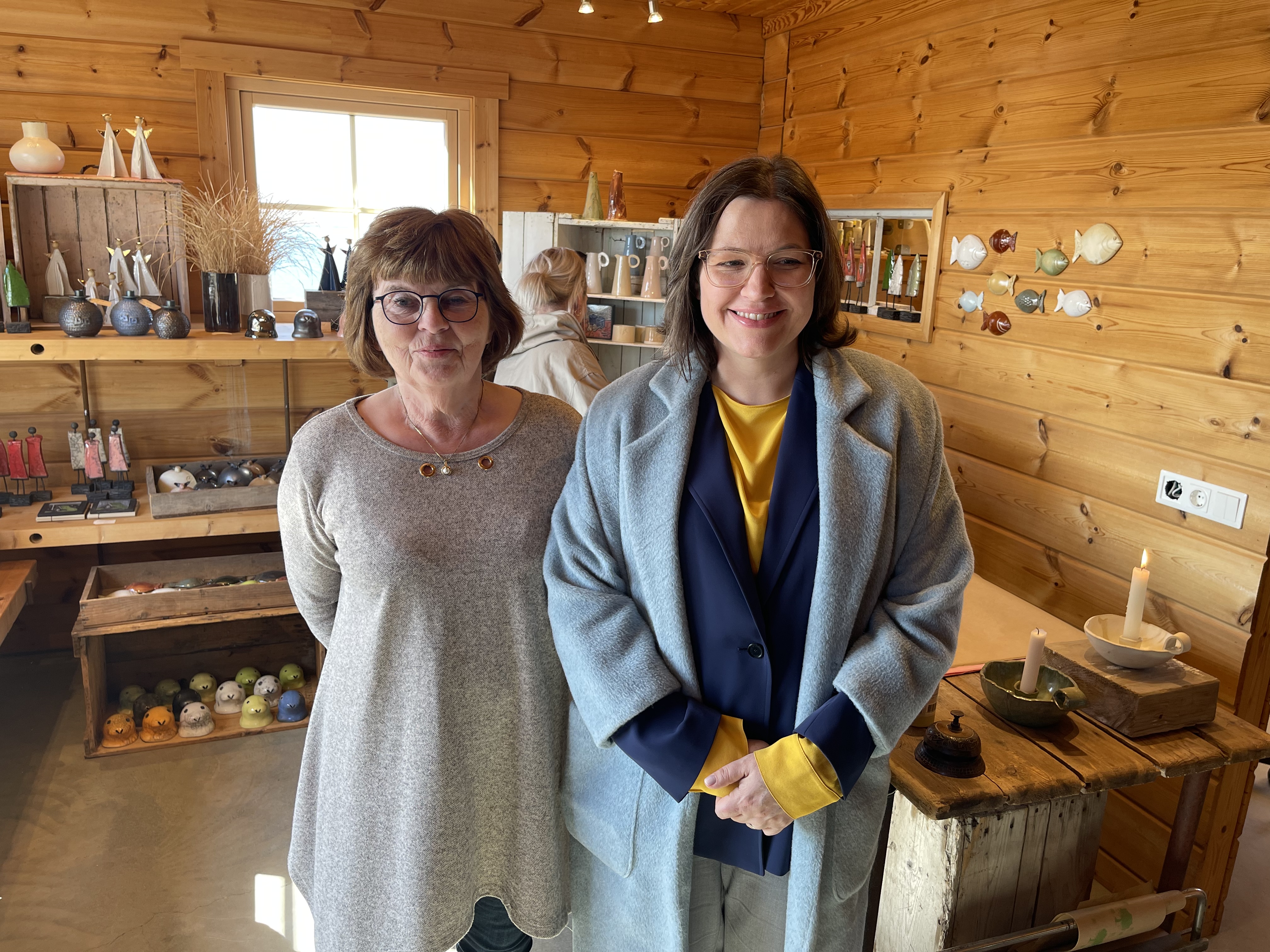 Frú Eliza og Gréta Jósefsdóttir leirlistakona í Leirhúsi Grétu.