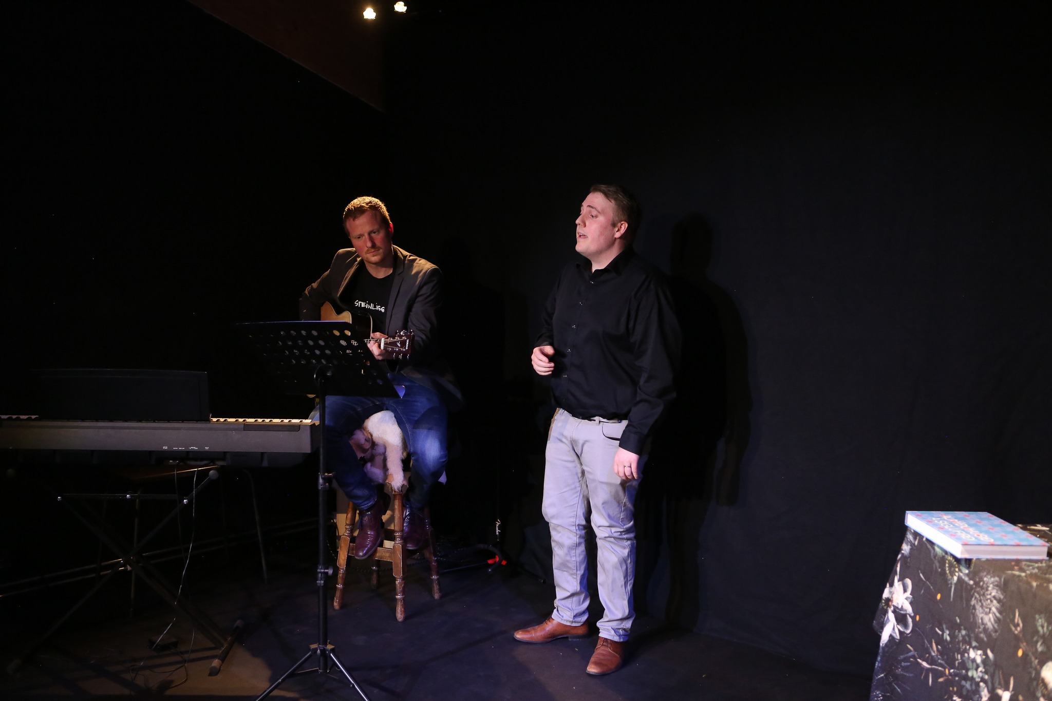 Elvar Logi og Kristinn fluttu nokkur lög á afhendingunni. Mynd: Hjalti Árnason.