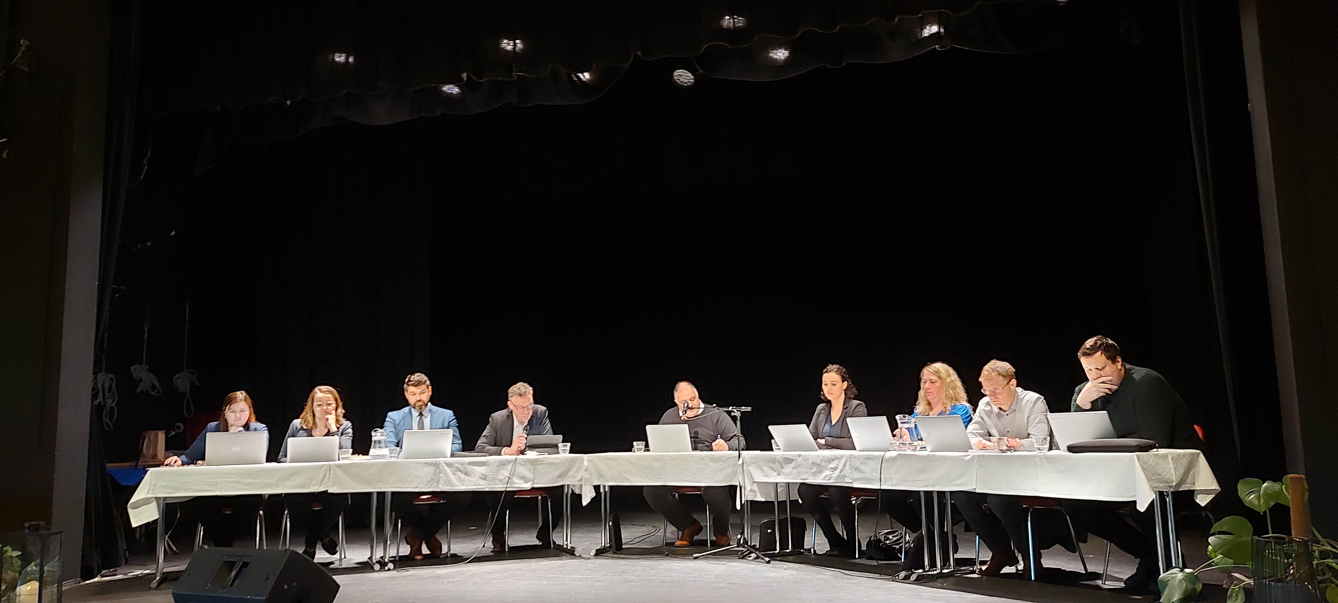 Núverandi sveitarstjórn ásamt starfsmönnum á hátíðarfundinum: Elín Jóna Rósinberg sviðsstjóri fjármála- og stjórnsýslusviðs, Unnur Valborg Hilmarsdóttir sveitarstjóri, Friðrik Már Sigurðsson, Magnús Magnússon, Þorleifur Karl Eggertsson oddviti, Elín Lilja Gunnarsdóttir, Sigríður Ólafsdóttir, Magnús Vignir Eðvaldsson og Þorgrímur Guðni Björnsson.