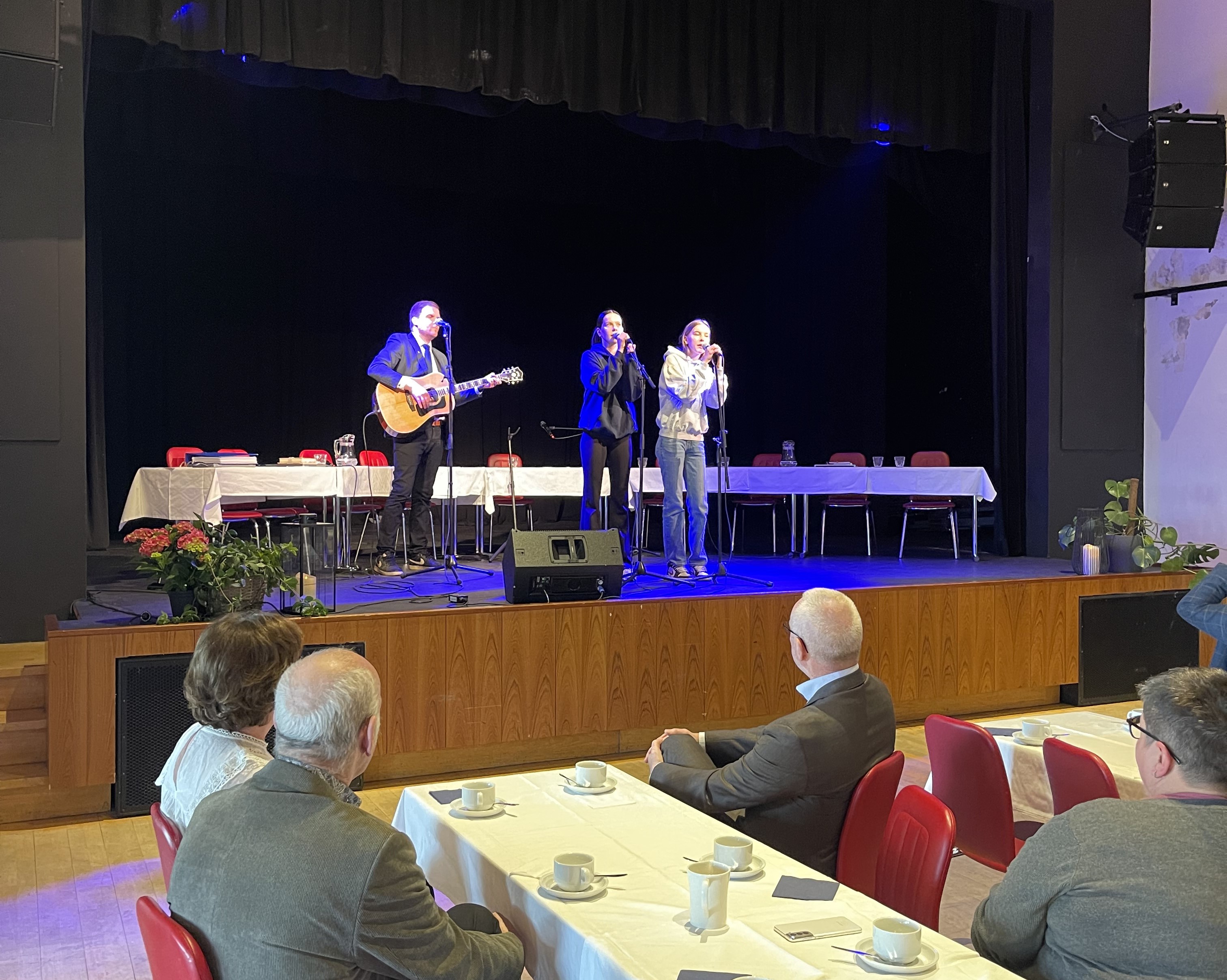 Valdimar Gunnlaugsson ásamt systrunum Örnu Ísabellu og Steinunni Daníelu Jóhannesdætrum fluttu tvö lög á fundinum.