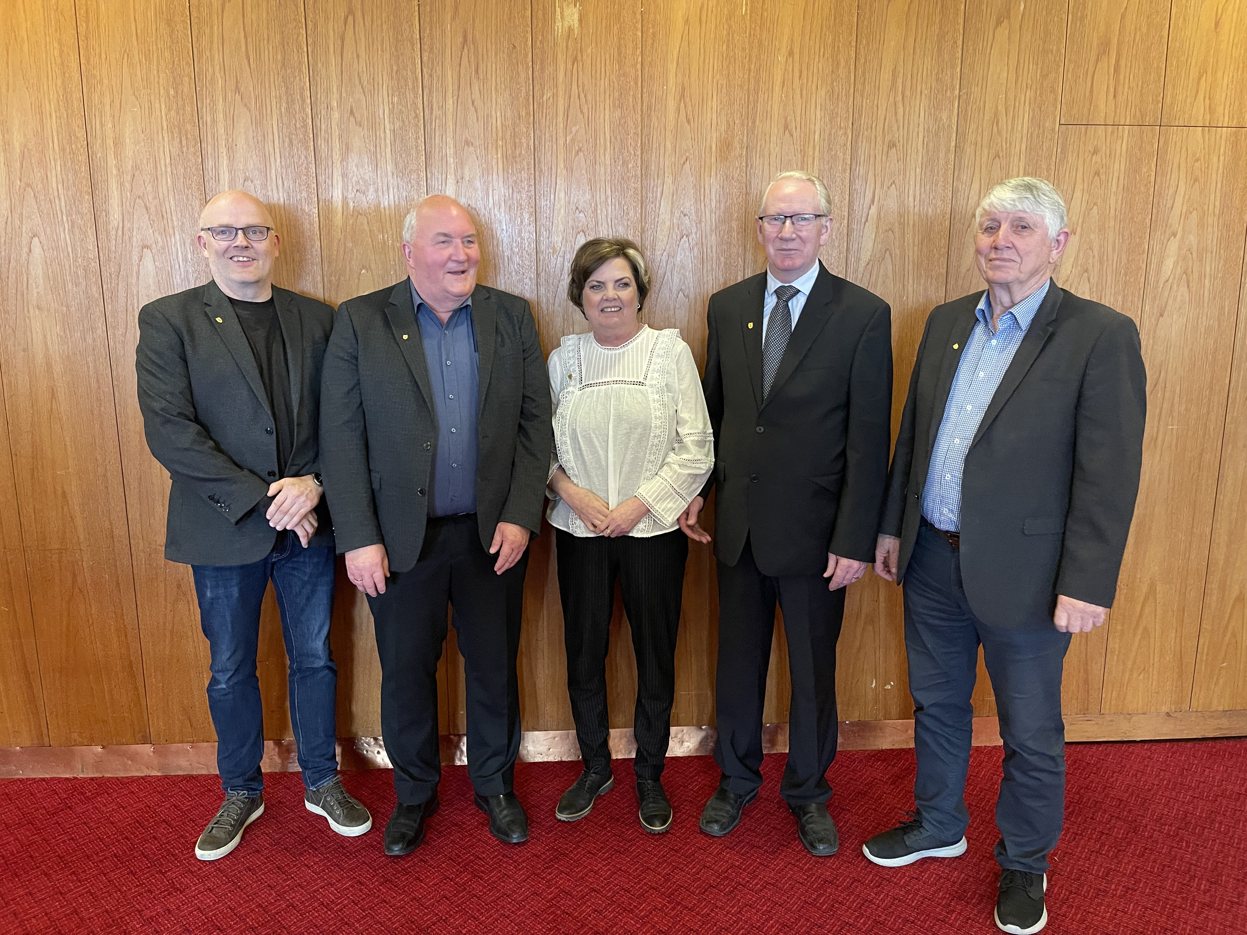 Fimm fulltrúar úr fyrstu sveitarstjórn sameinaðs sveitarfélags voru viðstaddir hátíðarfundinn. Frá vinstri: Gunnar Sveinsson, Guðmundur Haukur Sigurðsson, Elín R. Líndal, Ólafur B. Óskarsson og Þorvaldur Böðvarsson. Á myndina vantar Ágúst Frímann Jakobsson og Þorstein Helgason.