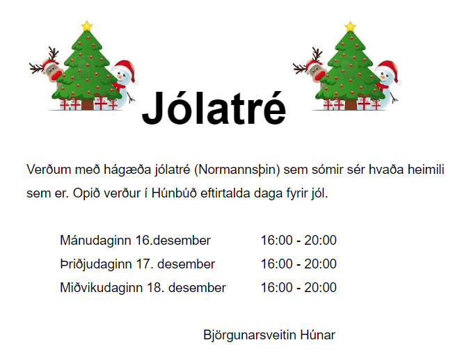 Björgunarsveitin Húnar selja jólatré til styrktar sveitinni 16., 17., og 18. desember frá kl. 16-20 í Húnabúð.