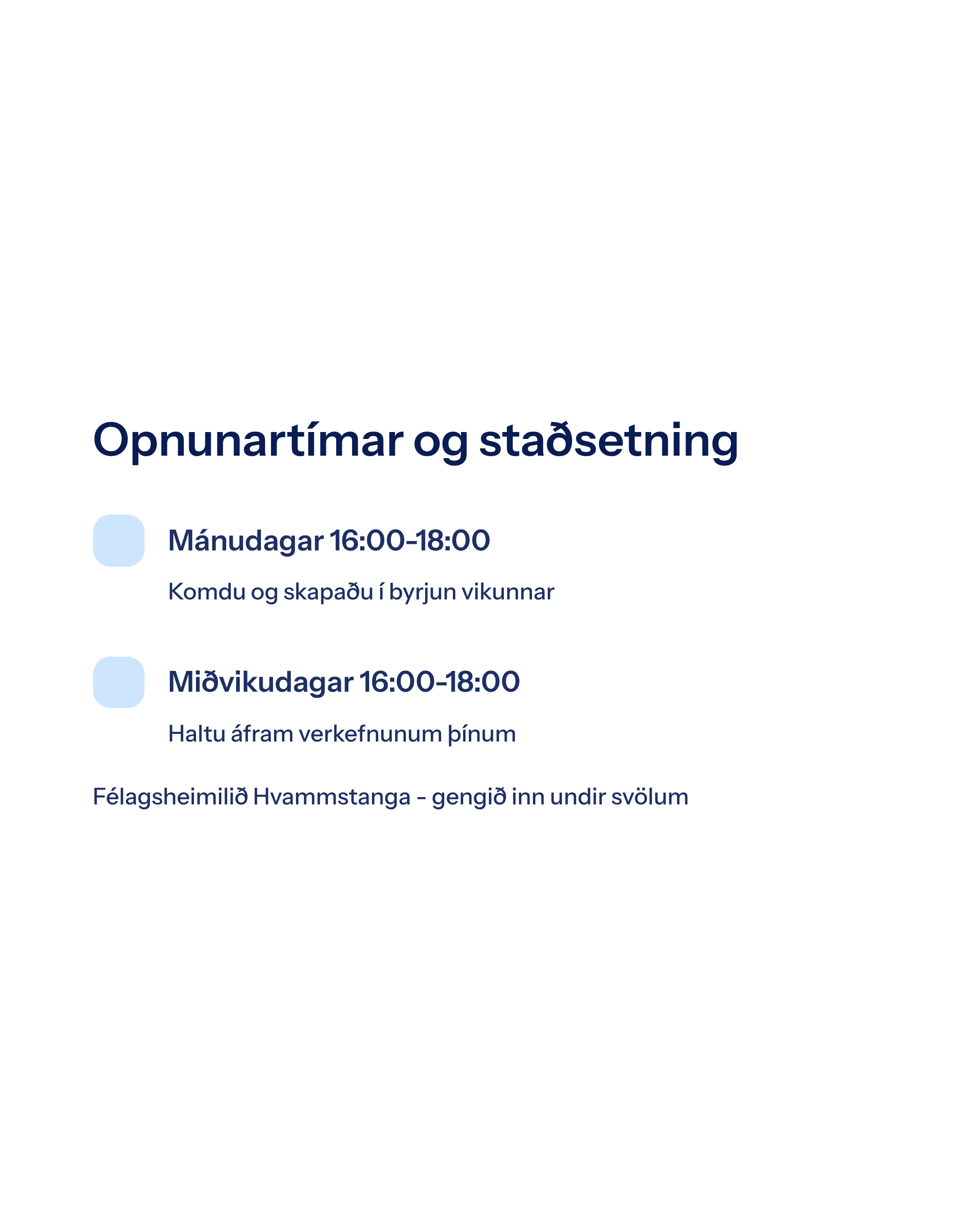 Opið mánudaga og miðvikudaga kl. 16:00 – 18:00 frá 22. september í