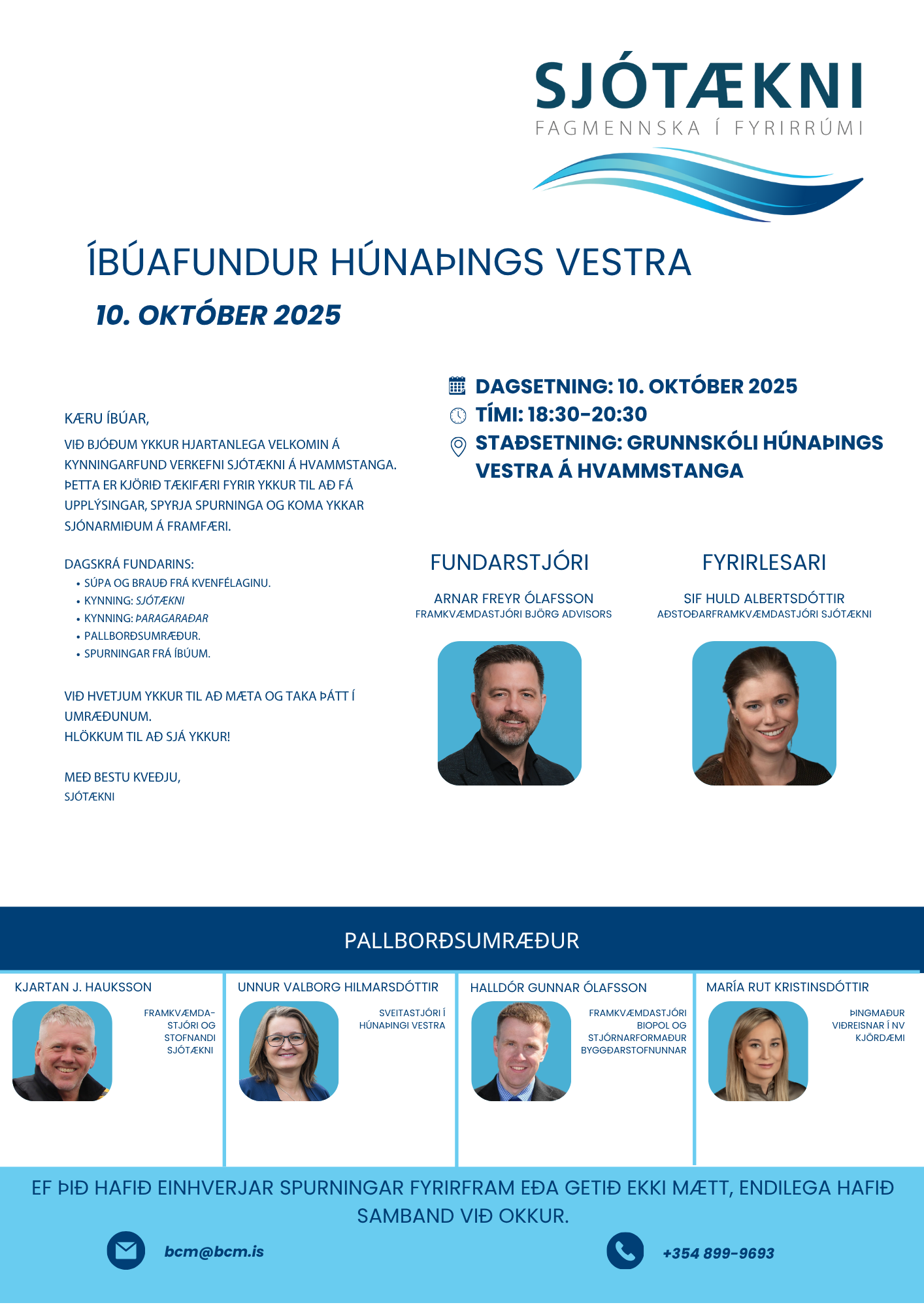 Haldinn verður sérstakur íbúafundur 10. október til að kynna íbúum Hvammstanga og Húnaþings vestra fyrir tilraunaverkefninu. Sjótækni hvetur alla til að mæta á fundinn. Fundurinn verður haldinn í Grunnskóla Húnaþings vestra á Hvammstanga og hefst kl. 18.30.