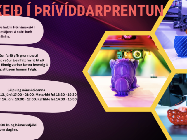 sjá nánar hér: https://www.hunathing.is/is/mannlif/frettir-og-auglysingar/tilkynningar-og-frettir/namskeid-i-3d-prentun